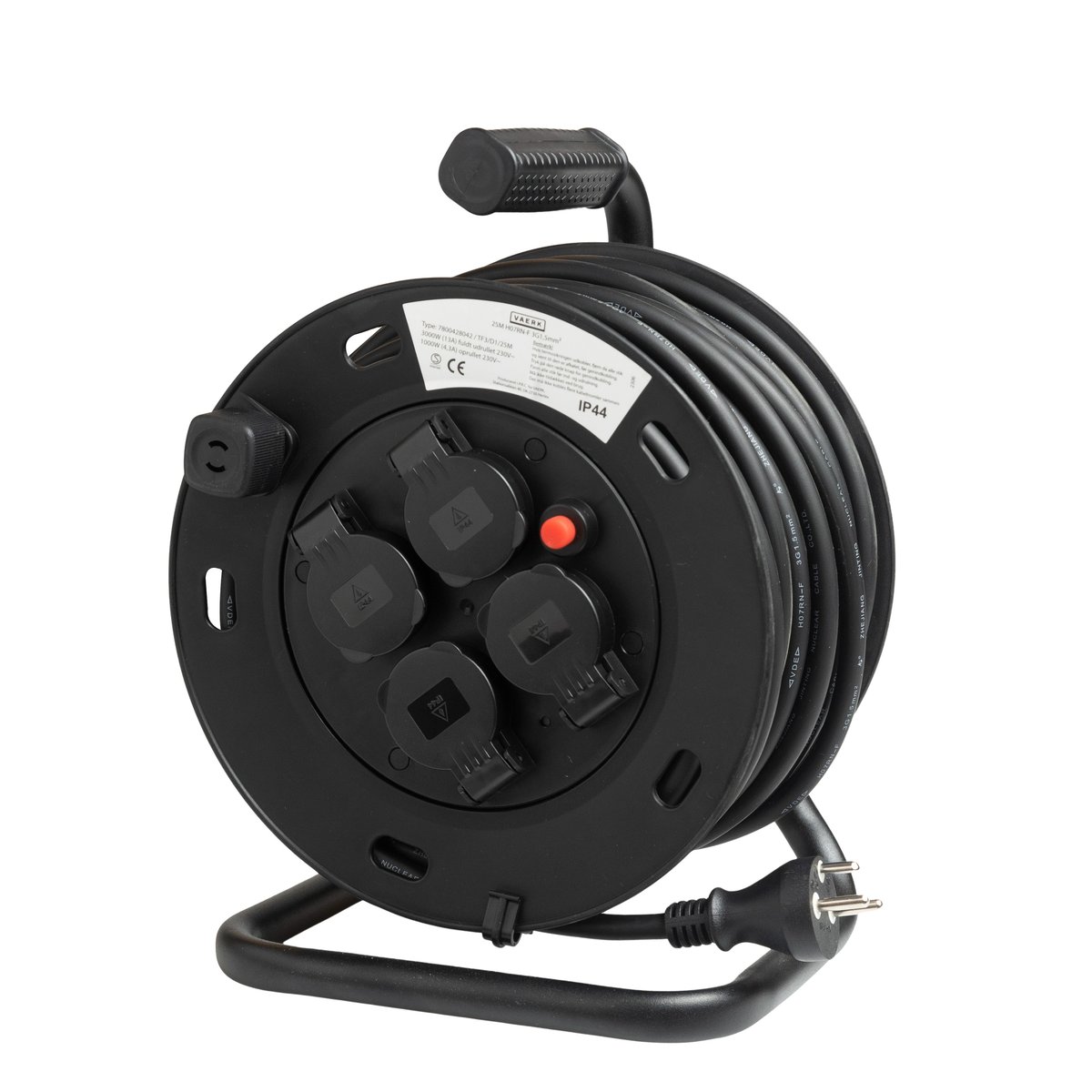 Specifikationer - Kabeltromle 25m. 4 udtag. 3G1,5 H07RN-F.
