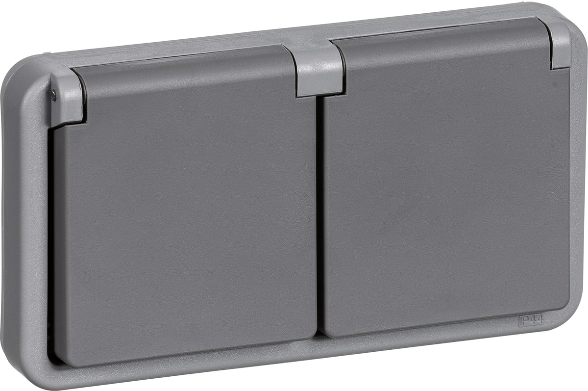 OPUS 74 stikkontakt med dæksel og tangent/låg er designet til både vådrum og udendørs installationer i boliger.